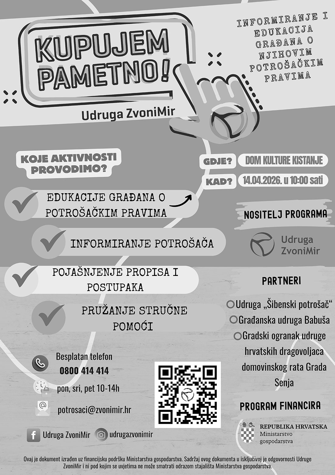 Udruga ZvoniMir je kninska lokalna udruga s višegodišnjim iskustvom, a posljednjih se nekoliko godina intenzivno bave zaštitom potrošača. Stoga Vas pozivamo da nam se pridružite i saznate kako ostvariti svoja prava.